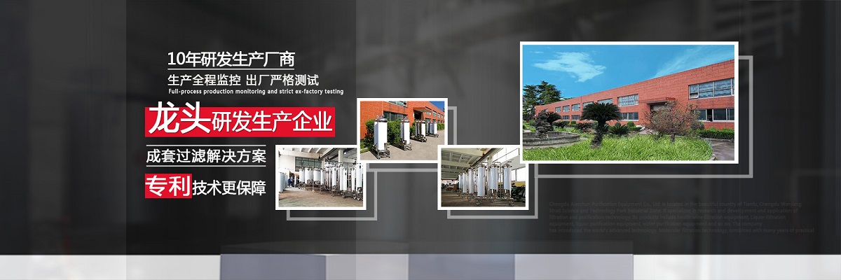 成都愛爾純凈化設(shè)備有限公司,坐落于美麗的天府之國,成都市溫江區(qū)海峽科技園工業(yè)區(qū),專業(yè)從事于過濾、凈化技術(shù)的研發(fā)應(yīng)用,產(chǎn)品有保健酒過濾設(shè)備、白酒過濾設(shè)備、白酒凈化設(shè)備、水凈化設(shè)備等,公司引進世界先進過濾分子技術(shù),結(jié)合專業(yè)技術(shù)人員資深多年實踐經(jīng)驗,解決酒類、飲水類后期處理難題。 業(yè)務(wù)涵蓋,酒類過濾:除混濁沉淀,澄清處理、除苦味,異雜味,新酒催熟陳化處理 、除塑化劑、固形物、雜醇油、甲醇及各類含量超標(biāo)后期處理。 水類:軟水、純凈水、礦泉水、飲料等凈化處理。用心為客戶提高生產(chǎn)效率、提高產(chǎn)品質(zhì)量、降低生產(chǎn)成本、環(huán)保減排而開發(fā)創(chuàng)新,堅持奮斗。 公司至誠每一位客戶,“誠信服務(wù),客戶至上”為宗旨,為客戶要求,用心凈化每一點滴,我們都將以精準(zhǔn)的數(shù)據(jù)化設(shè)計、嚴(yán)格的設(shè)備制作質(zhì)量把關(guān)、快捷專業(yè)的安裝調(diào)試以及周到的售后服務(wù),解決客戶生產(chǎn)過程中遇見的各種酒、水后期處理的技術(shù)難題。